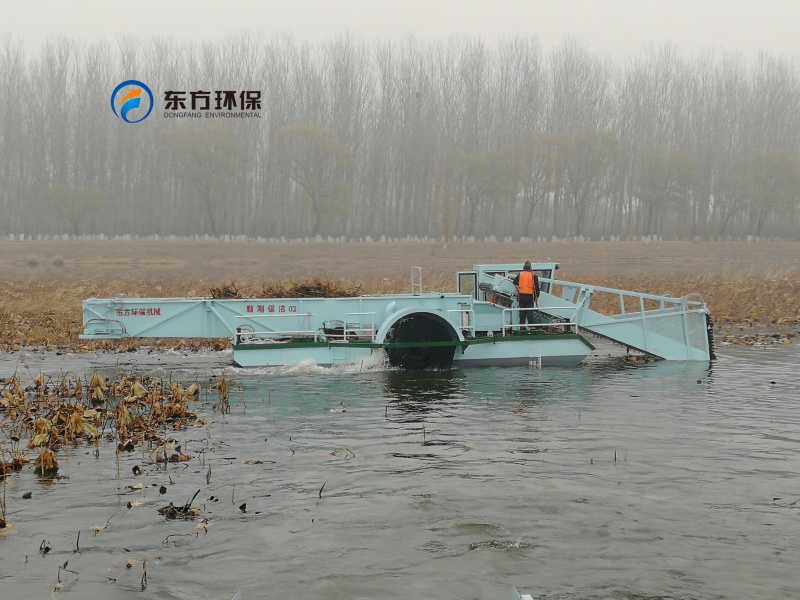 山東東平湖管理局購買的DGLW110型全自動蘆葦收割船